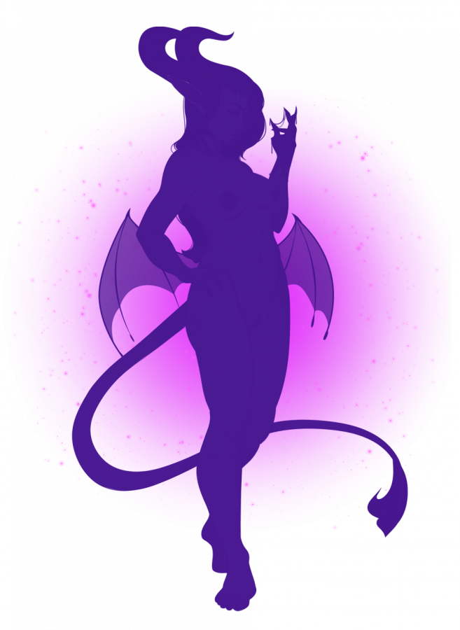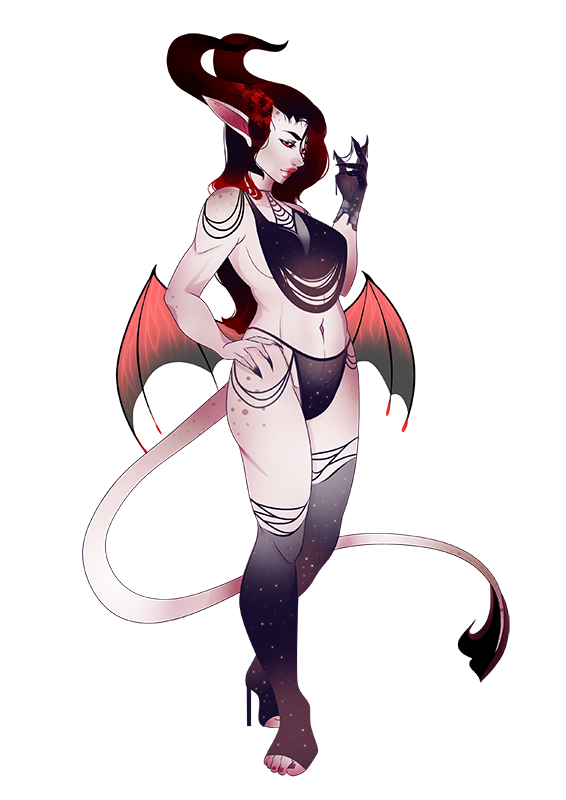 The Wyvin Curse causes certain Kamina to undergo anatomical and magical changes when they reach their ‘Fruility’ stage of adolescence. Changes such as; horns and nails growing longer and tougher, small ornamental wings span from their lower backs, their tongues become longer and pronged at the tip and their canine teeth elongate into sharp venom-filled fangs. The pupils of their eyes also split into an eight-pointed star and their genitalia, tongue and spear of their tail turn black. They call a transformed Kamina, a Wyviness.